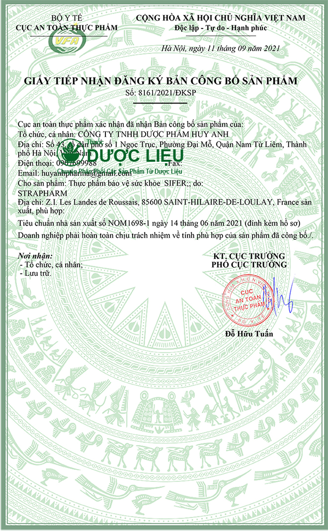 Sản phẩm được nhập khẩu nguyên hộp từ Pháp (có nhãn phụ bằng tiếng việt) và Bộ Y Tế cấp phép lưu hành toàn quốc